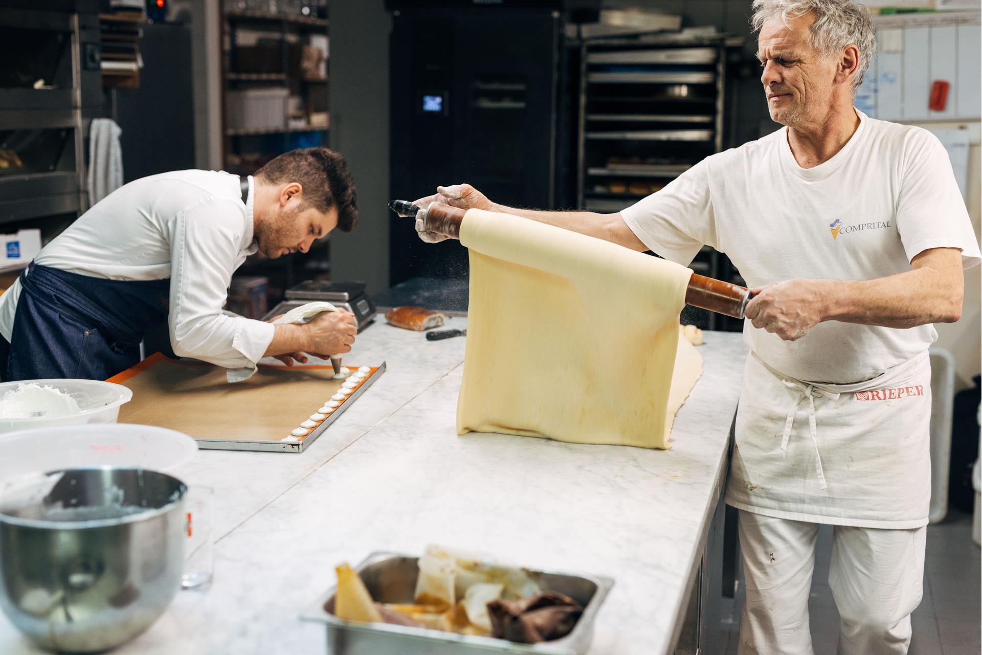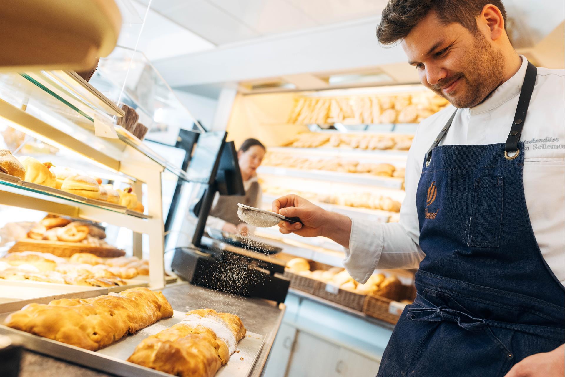 Die Backstube der Familienbäckerei Sellemond ist klein und hat sich kaum verändert seit Benjamin und seine Brüder auf der Teigausrollmaschine laufen lernten. „Wir mussten unserem Vater immer helfen und zu Hause Kekse tunken“. Heute nennt er das ein Glück: „Man startet ganz anders in den Berufsalltag als zum Beispiel die Kinder aus der Stadt. Wir merken unseren Auszubildenden sofort an, ob sie von einem Hof kommen. Fleiß wird einem da quasi in die Wiege gelegt.“