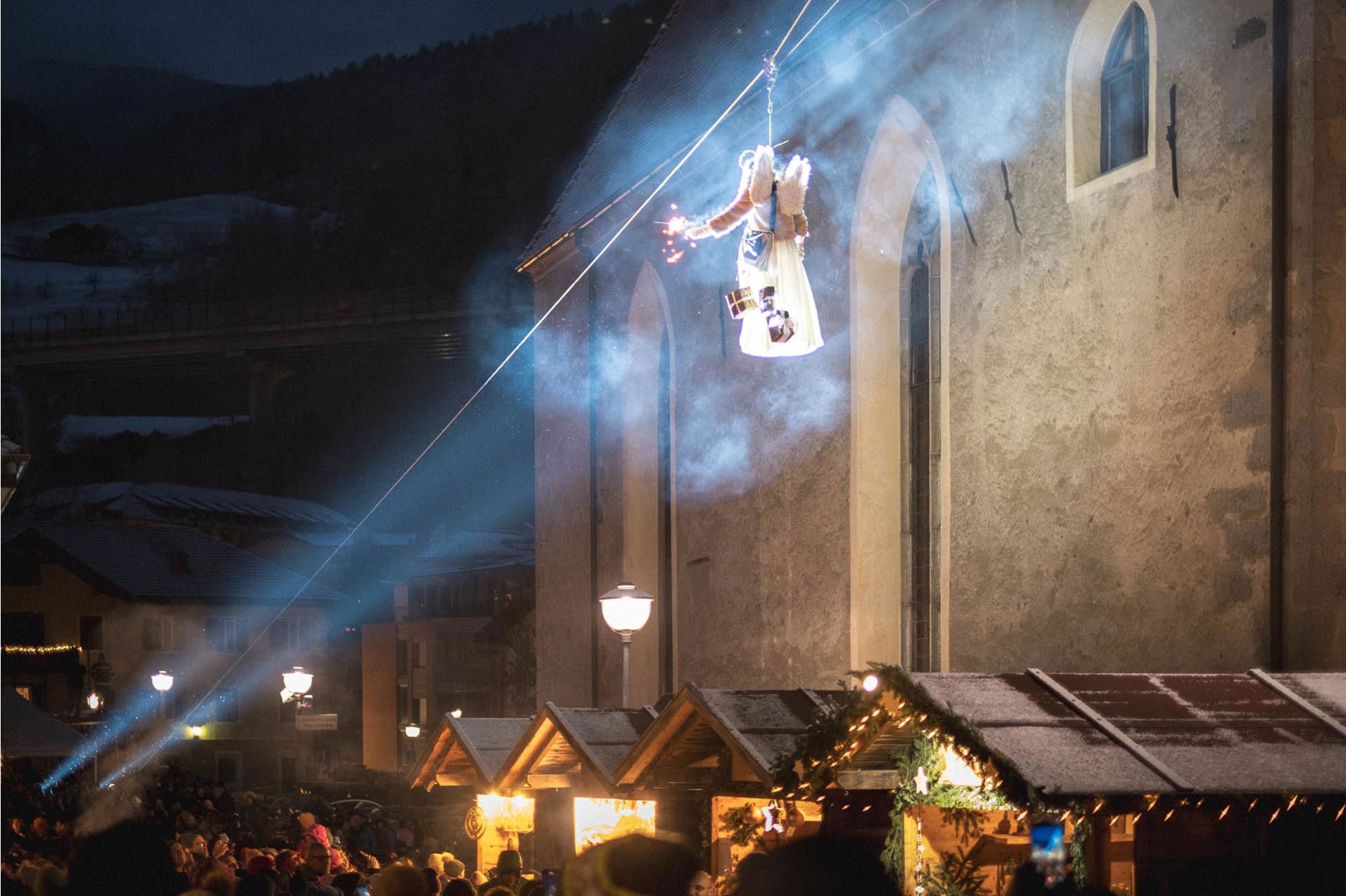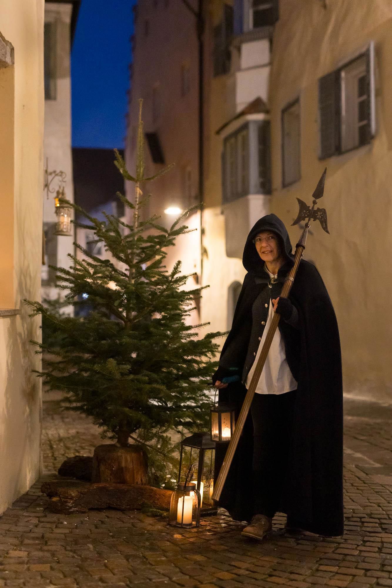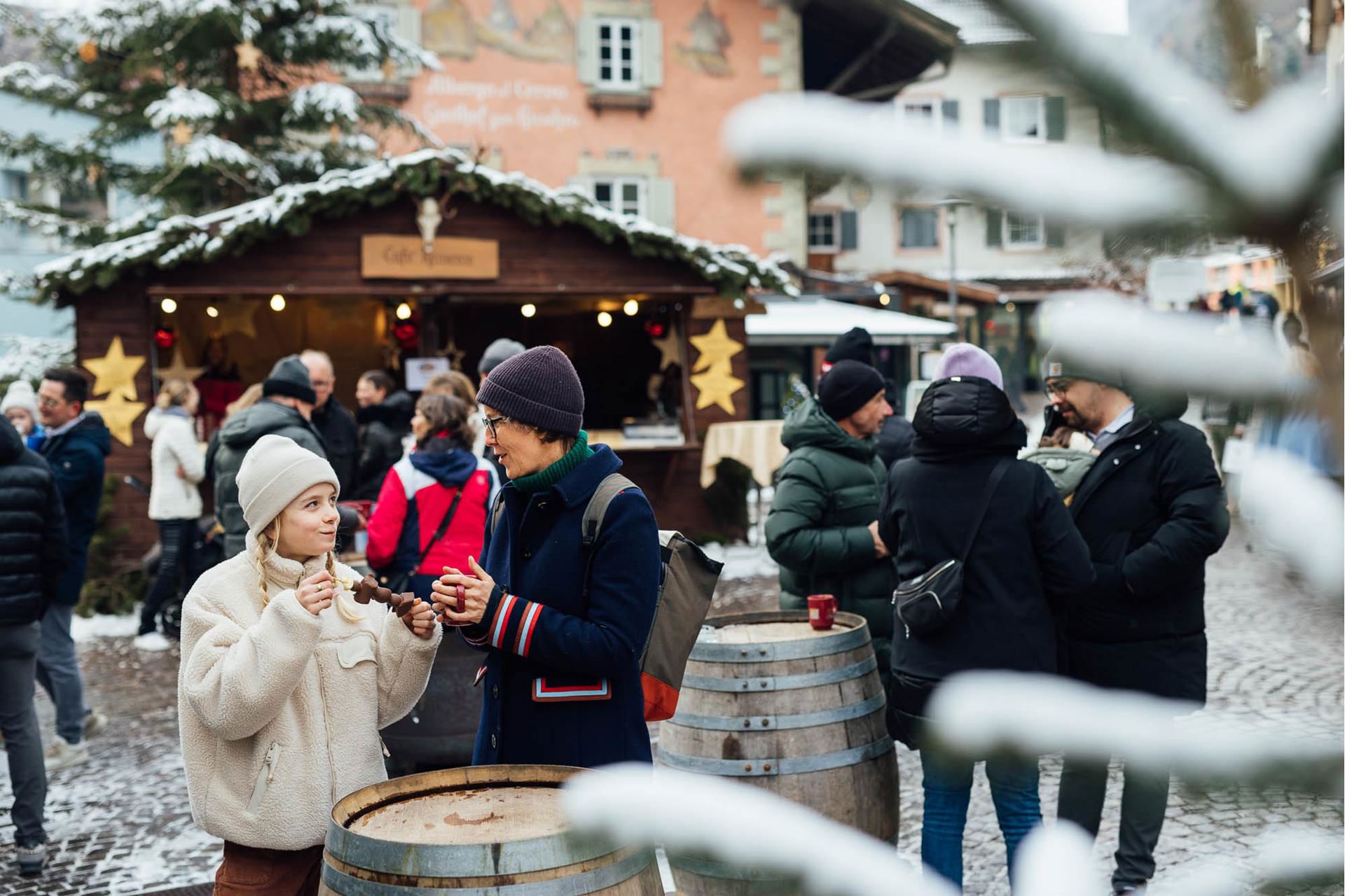 Tiefgrüne Tannenbäume und naturnahe Dekorationen lassen die Altstadt von Klausen in einer besonders weihnachtlichen Kulisse erstrahlen, während funkelnde Laternen die Fassaden historischer Gebäude zieren. Durch die verwinkelten Gassen ziehen sich die Verkaufsstände und reichen bis in die urigen Kellergewölbe der Bürgerhäuser. Dort verbergen sich wahre Schätze: von handgedrechselten Schüsseln, filigran geschnitzten Krippenfiguren, kuscheligen Filzpantoffeln bis hin zu aromatischen Kräuterspezialitäten und feinen Honigprodukten – alles ist handgemacht und nicht nur fürs Auge, sondern auch für den Gaumen ein Genuss. Ein süßlicher Weihnachtsduft liegt in der frostigen Winterluft. Die Hände umklammern eine dampfende Tasse Glühwein, während süße und herzhafte Leckereien Körper und Seele wärmen. Sanfte Melodien weihnachtlicher Chöre und erdige Töne der Bläser erklingen im Hintergrund, sodass das weihnachtliche Flair in jedem Winkel der Altstadt spürbar wird.