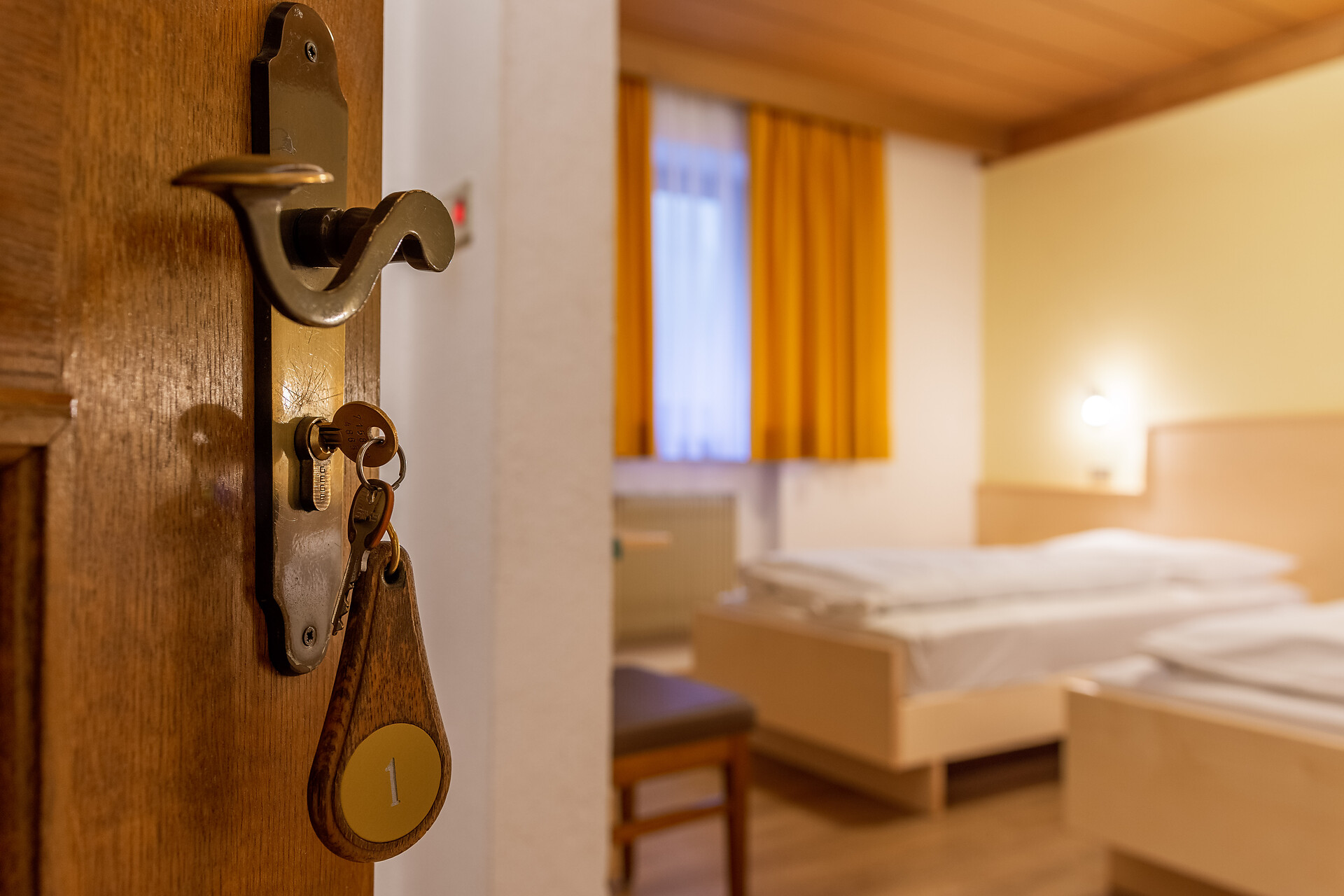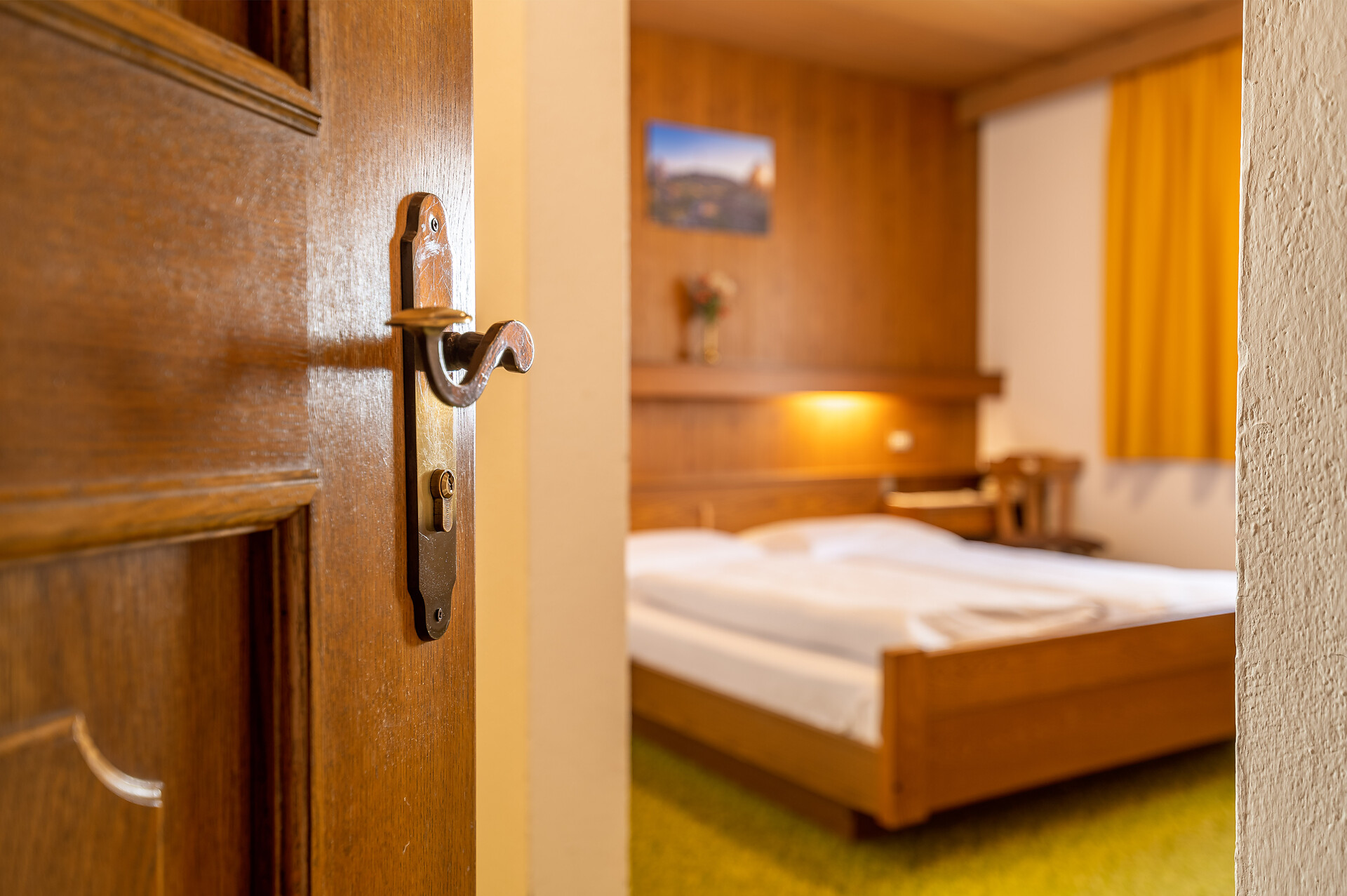 Ausstattung: Doppelzimmer, Doppelbett, Zustellbett, Safe, Dusche / Bad, Bidet, TV, WLAN, Haupthaus