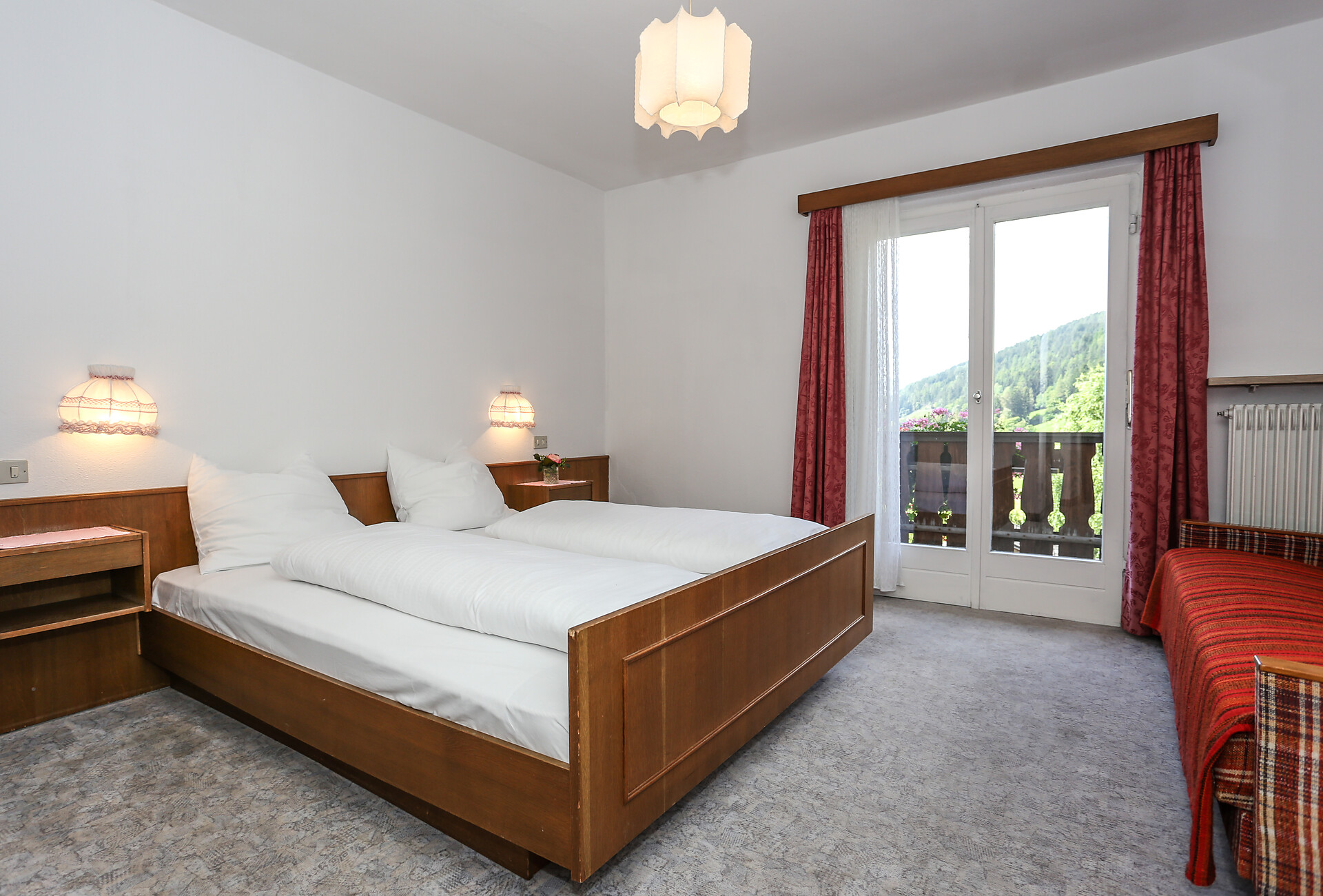 Ausstattung: Einzelzimmer, Doppelzimmer, Mehrbettzimmer, Einzelbett, Doppelbett, Zustellbett, Balkon, Terrasse, Dusche / Bad, Haupthaus, Südseite