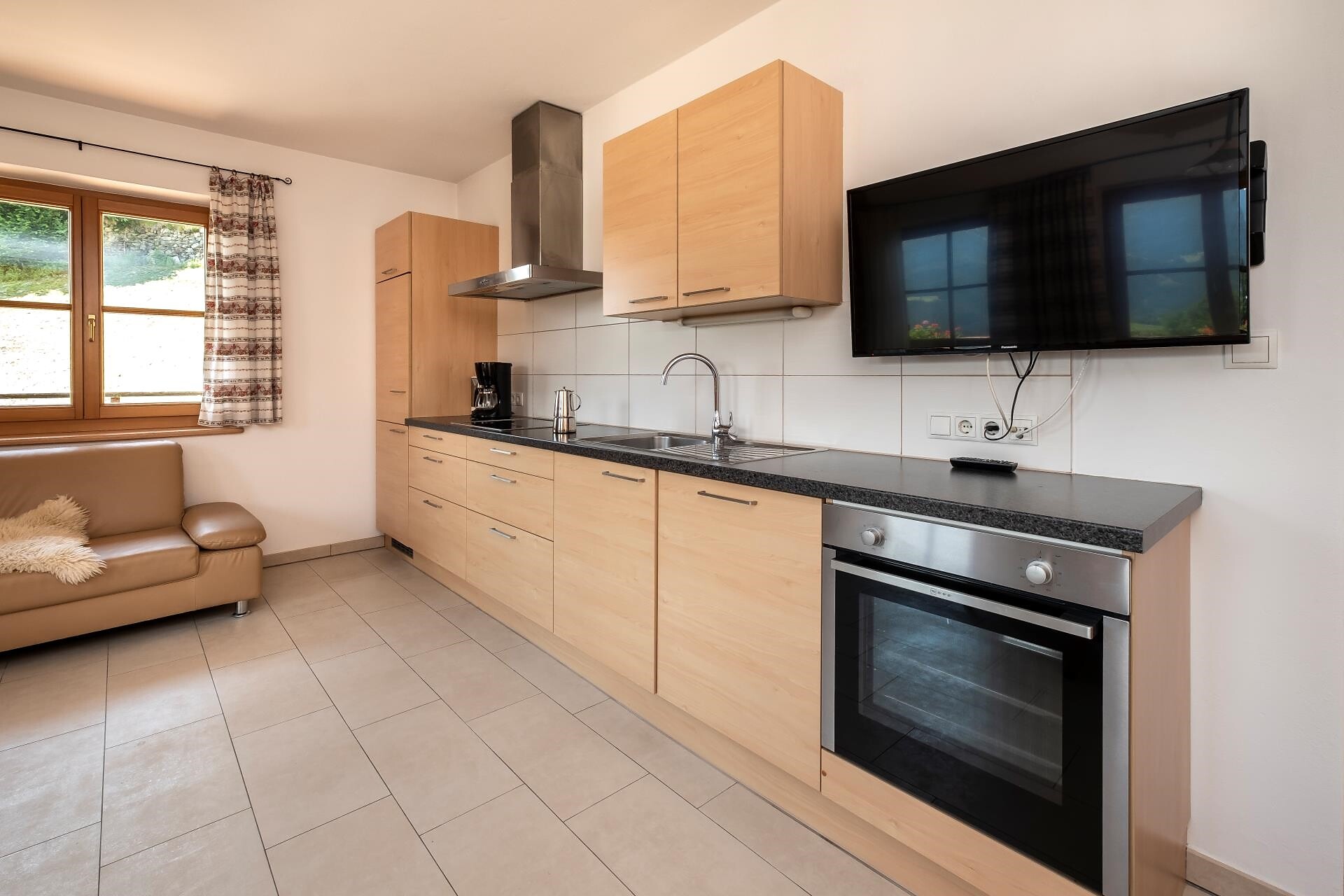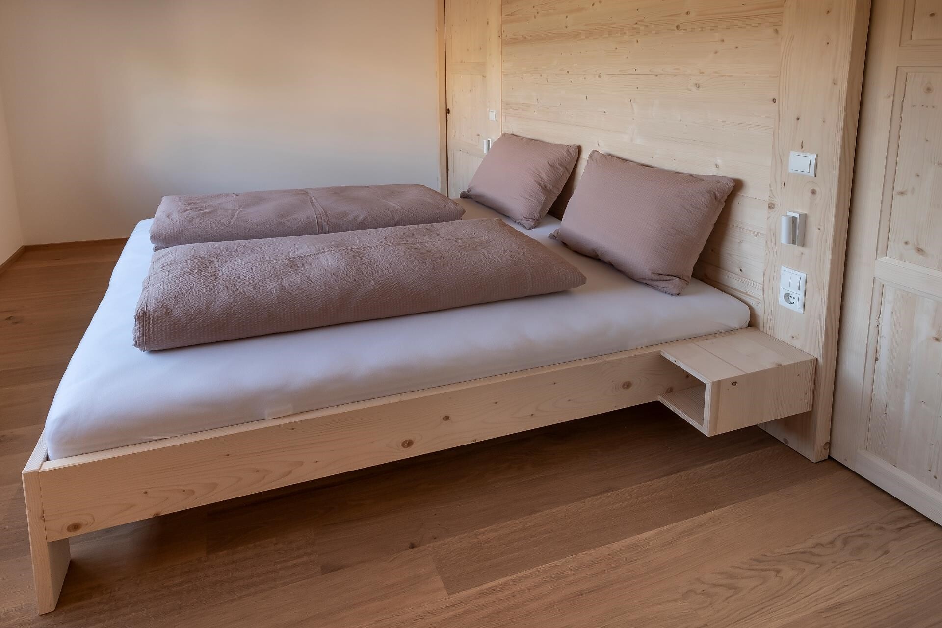 Das Holz für die Möbel in der Wohnung stammt aus unserem eigenen Wald, die Einrichtung wurde von Bauer Herbert in seiner Tischlerwerkstatt selbst angefertigt. Genießen Sie die wohltuende Wärme des Holzes.
