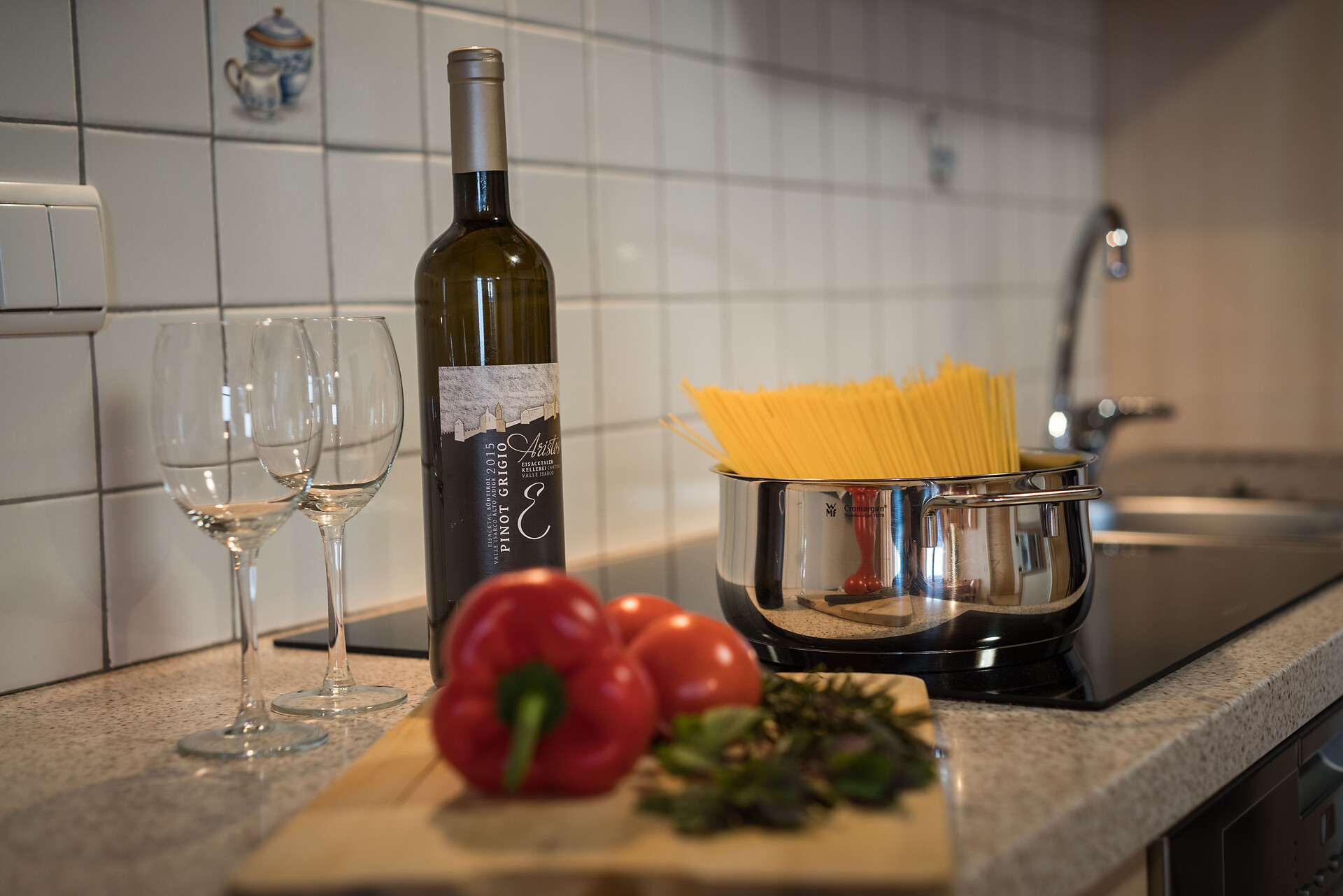 Ausstattung: Einzelbett, Doppelbett, Zustellbett, Babybett, Etagenbett, Doppelschlafcouch, Balkon, Terrasse, Garten, Allergikerzimmer, Bettwäsche vorhanden, Safe, Nichtraucher-Apartment, 2 oder mehr Schlafzimmer, Wohnküche, Kaffeemaschine, Geschirrspülmaschine, Elektroherd, Mikrowelle, Geschirrausstattung, Kochfeld, Dusche/Bad, 2 oder mehr Bäder, Bidet, Haarfön, Badetücher, HiFi, TV, Fernseher auf Anfrage, Satellit/Kabel, WLAN, Internetanschluss, Reinigung auf Anfrage, Endreinigung inbegriffen, Haupthaus, Südseite