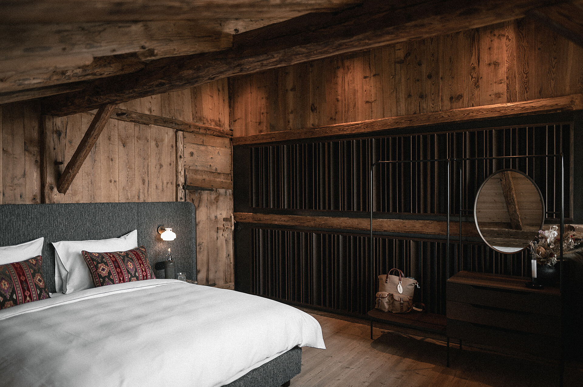 3 Doppelbett-Zimmer, teilbar als Einzelbetten, ausgestattet mit „Simmons“ Boxpringbetten und „Pierre Frey“ Stoffen. Antike Bauermöbel mit Fundstücken aus Bali, italienische Designerlampen setzten Lichtspots auf dem Tonnengewölbe. Bewährtes liebäugelt mit ungewohntem, massive Steinmauern mit Holz und Glas. Materialien und Farben, Strukturen und Formen verwandeln sich, verschmelzen, schaffen lebendige Frei-Räume. Bereit euch mit ihrer behaglichen und zugleich inspirierenden Atmosphäre zu umarmen.