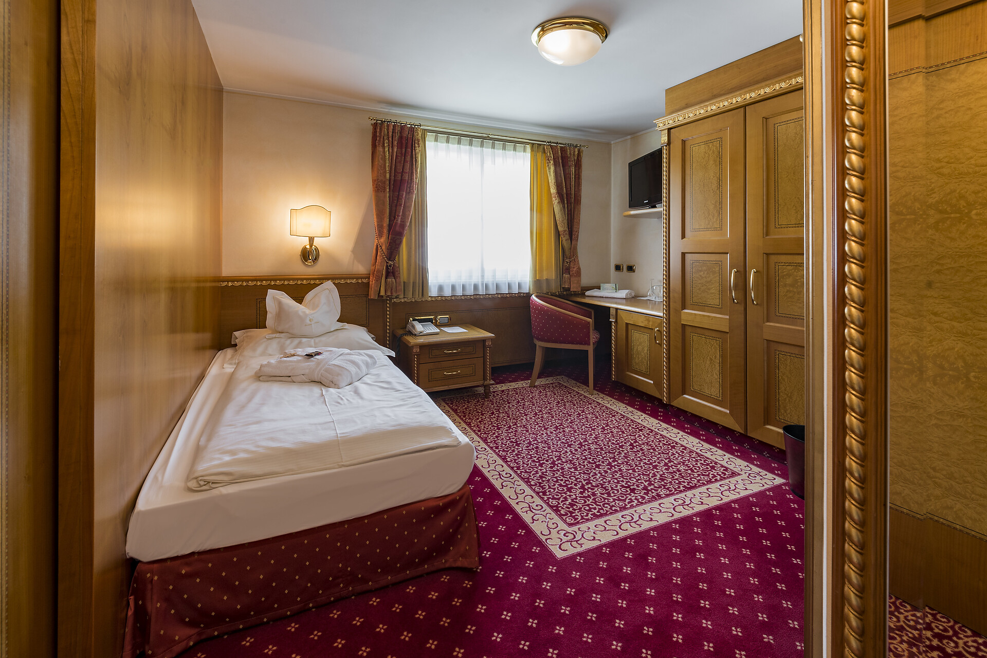 Die Einzelzimmer Standard sind 19m² groß und ausgestattet mit einer Terrasse, mit Blick nach Villanders ausgerichtet.