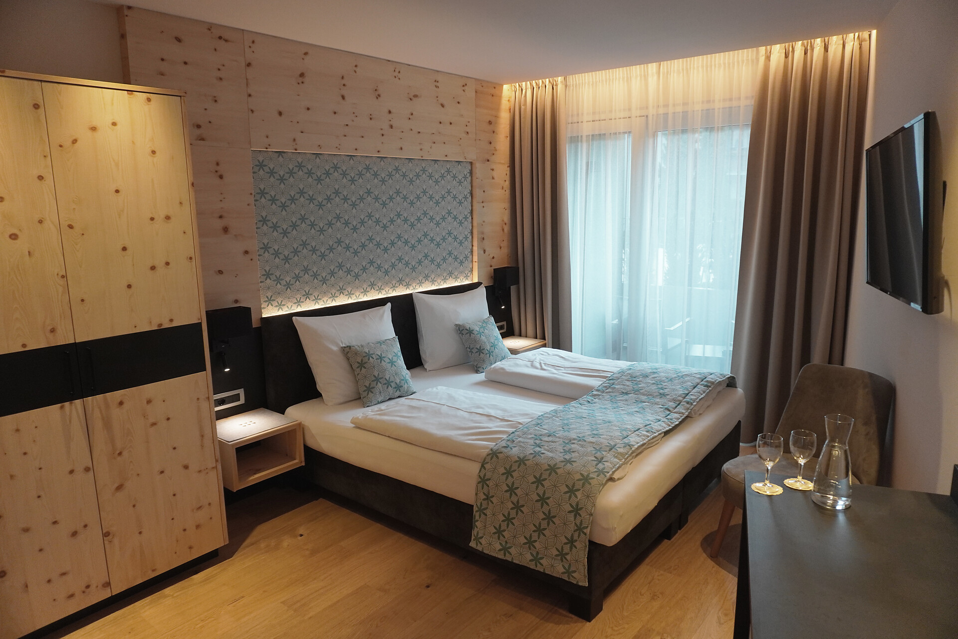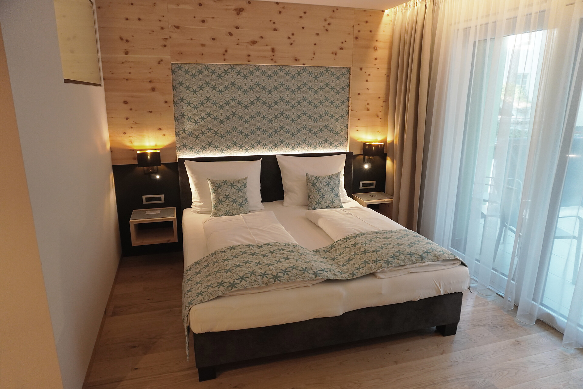 Die modern eingerichteten Doppelzimmer sind mit 19m² sehr geräumig und sind ausgestattet mit Balkon, mit Blick nach Villanders.