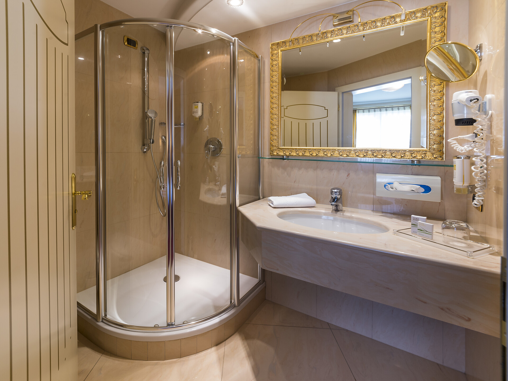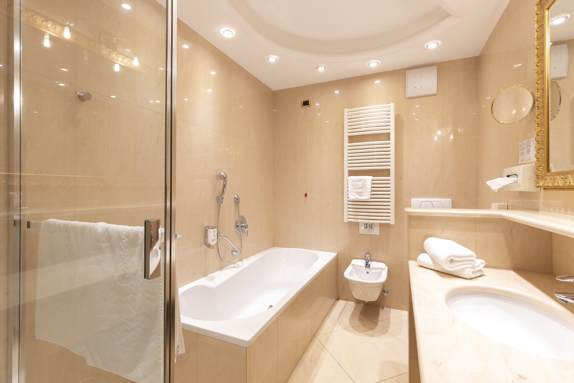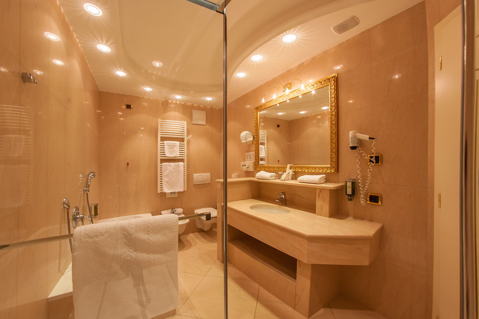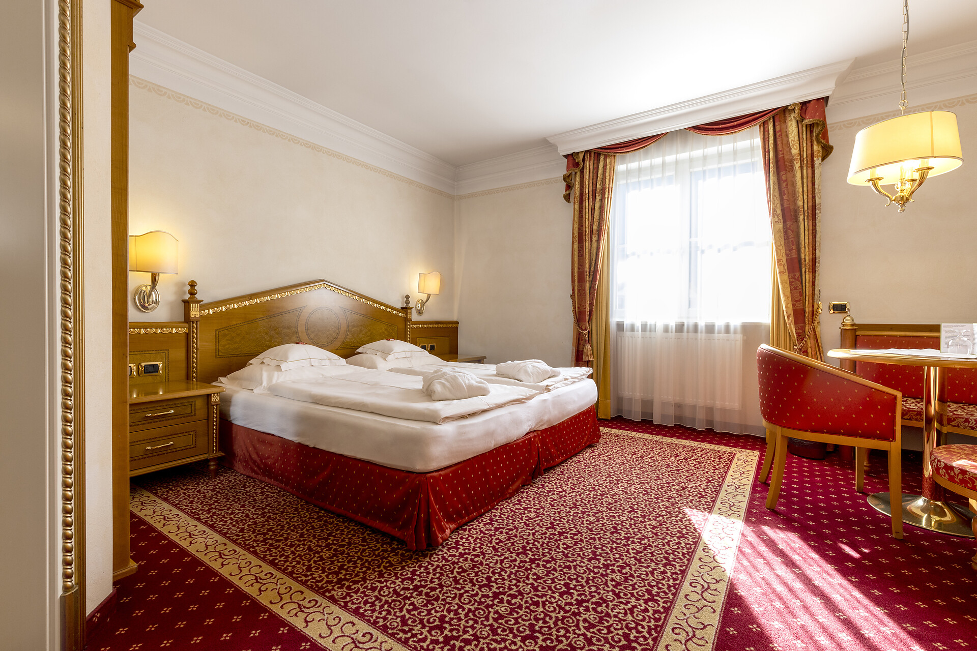 Ausstattung: Doppelbett, Zustellbett, Babybett, Bettsofa, Klimaanlage, Barrierefrei, Kachelofen/Offener Kamin, Minibar, Safe, Dusche / Bad, Separates WC, Bidet, Haarfön, Bademantel, TV, Satellit/Kabel, WLAN, Internetanschluss