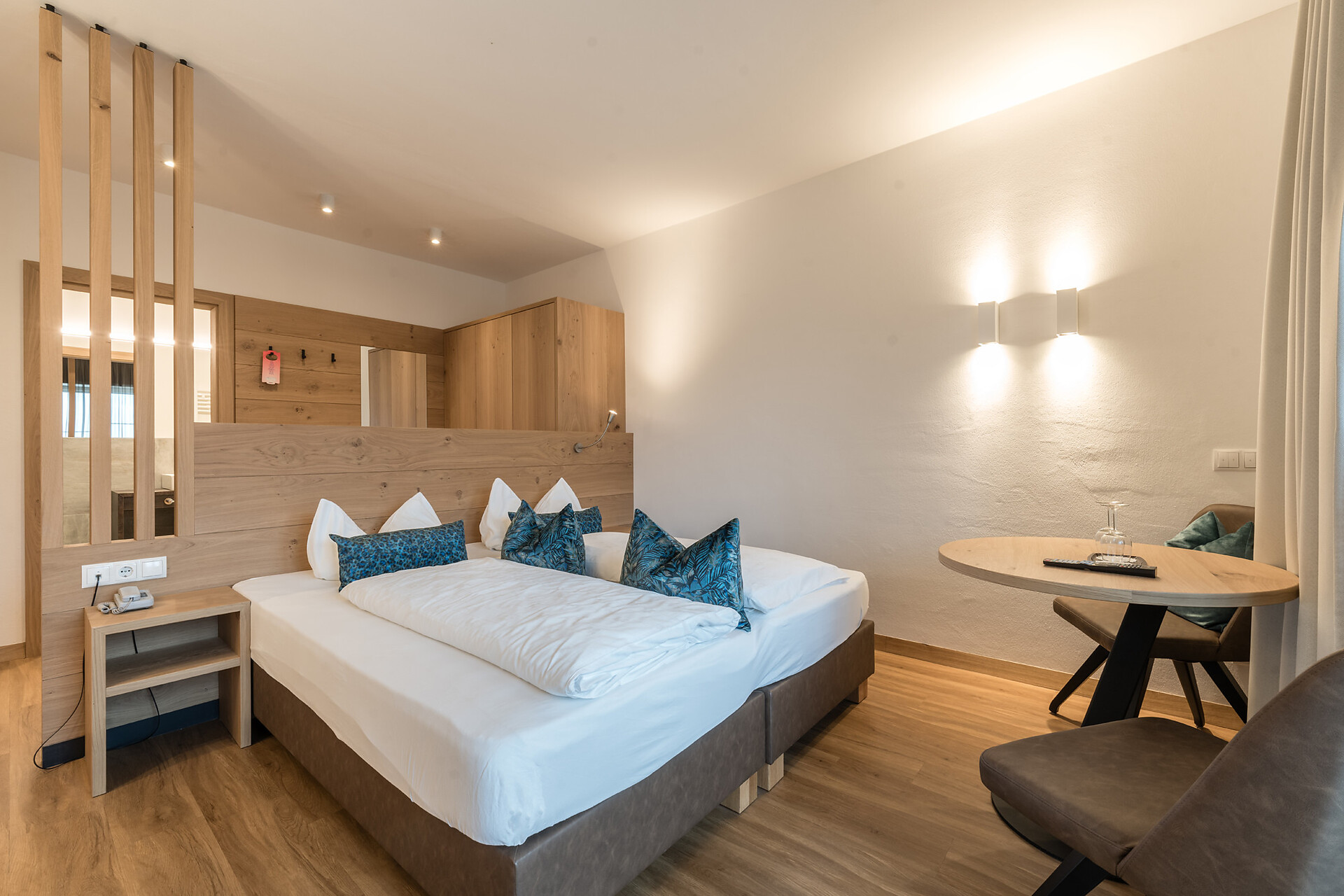 (28-32 m²) 2-4 Personen Großzügiges Doppelzimmer mit Wohnbereich, Badezimmer mit Dusche, WC und Bidet, Safe, Telefon, Sat-TV-LCD, Föhn, Minibar, Balkon oder Terrasse. Südost- oder Südwestseite.