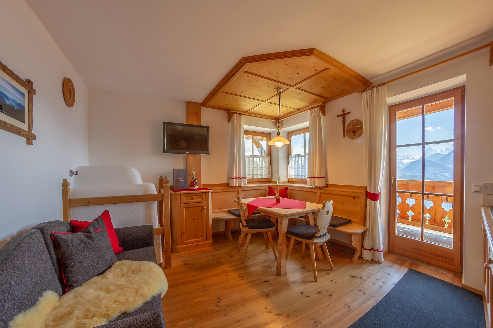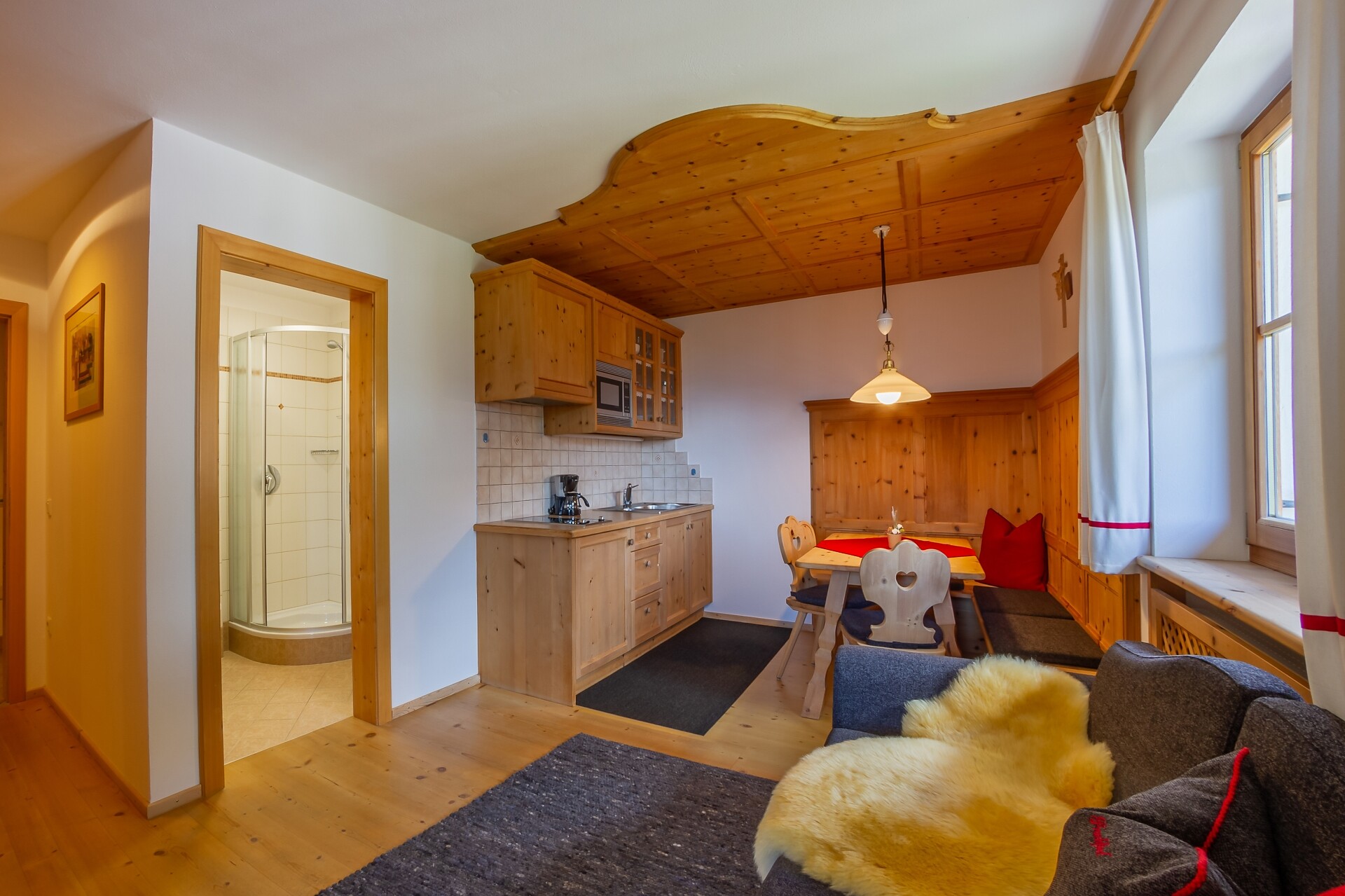 Die Ferienwohnung ist mit Zirbenholz getäfelt. Freuen Sie sich auf den wohltuenden Duft des Holzes und spüren Sie die wissenschaftlich nachgewiesene, positive Wirkung des Zirbenholzes auf Ihren Schlaf.