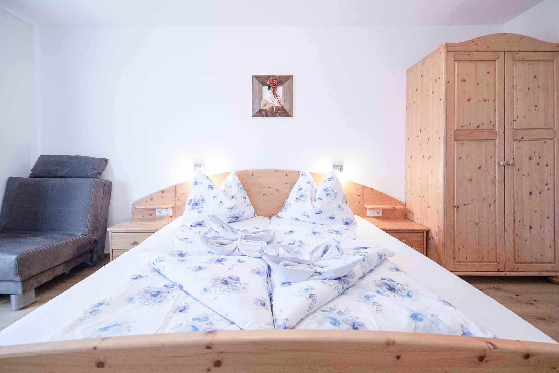 Durch einen separaten Eingang erreichen Sie unsere Wohnung "Enzian". Sie ist vollständig und umfassend ausgestattet. Die Ferienwohnung besteht aus 2 Schlafzimmern, hier finden 2-5 Personen einen Schlafplatz. In der voll ausgestatteten Küche mit Sofa können Sie nach Herzenslust kochen. Der gemütliche Holzofen lädt zum verweilen in der Küche ein. Um die Sonne zu genießen, finden Sie noch einen eigenen Balkon, hier kann ein Gläschen Wein und die atemberaubende Aussicht genossen werden.