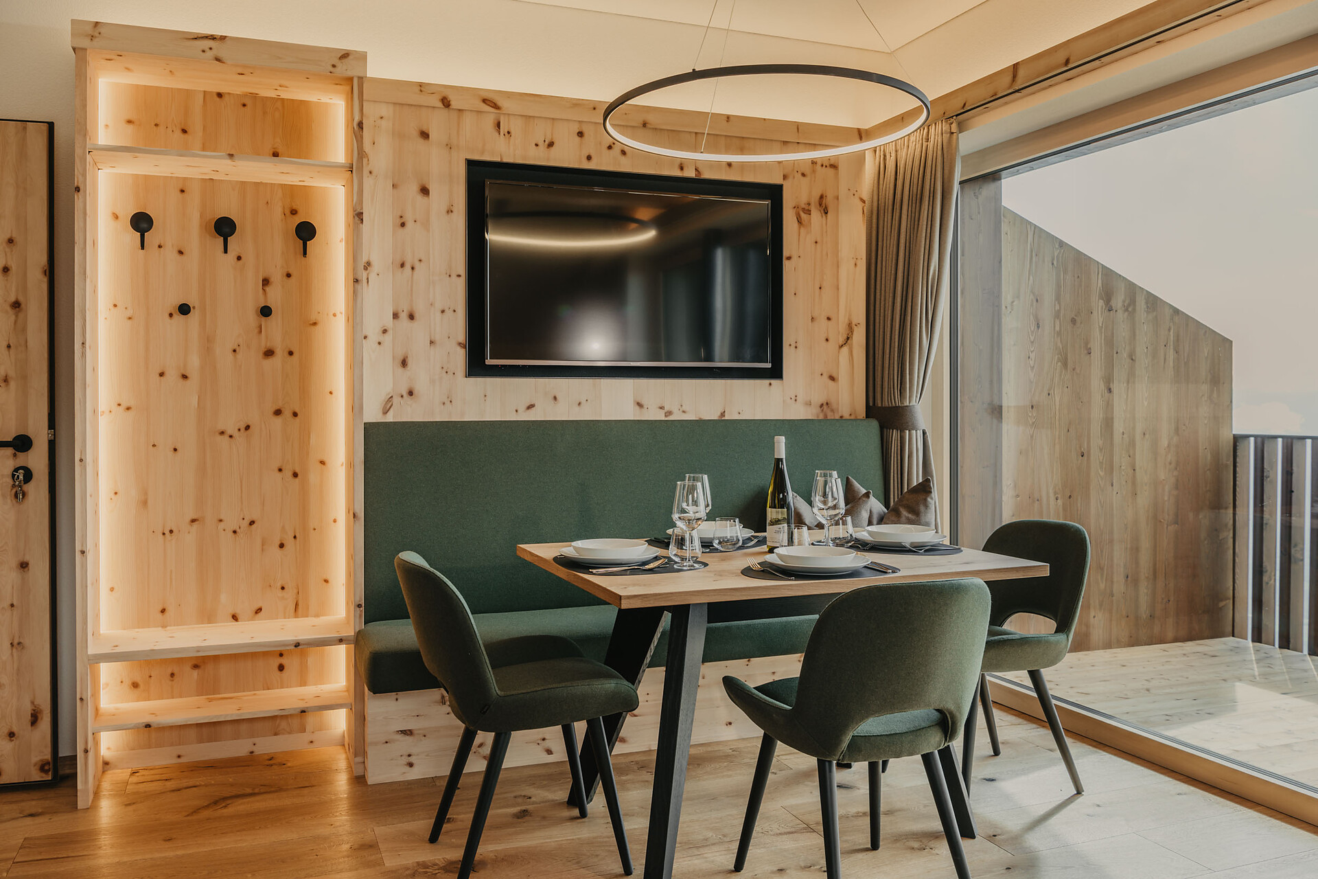 Ausstattung: Doppelbett, Balkon, Safe, Nichtraucher-Apartment, Wohnküche, Kaffeemaschine, Geschirrspülmaschine, Elektroherd, Geschirrausstattung, Kochfeld, Dusche/Bad, Bidet, Haarfön, Badetücher, Badewanne, HiFi, TV, Satellit/Kabel, WLAN, Internetanschluss, Endreinigung inbegriffen, Haupthaus, Panoramablick
