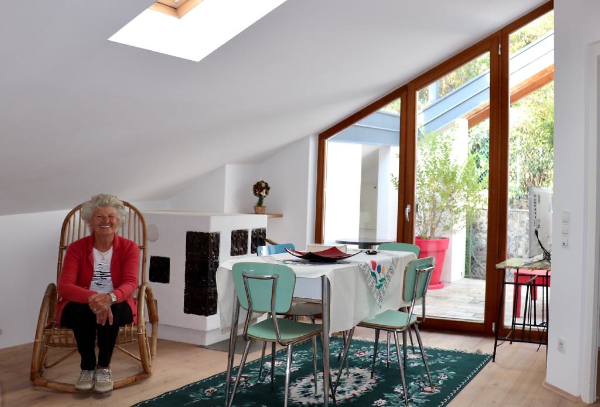 Diese charmante Zweizimmerwohnung bietet ein eigenes Schlafzimmer und einen gemütlichen Wohnbereich mit offener Küche und einem traditionellen Kachelofen, der eine behagliche Atmosphäre schafft. Von der privaten Terrasse aus genießen Sie einen fantastischen Blick auf das Schloss Branzoll und das nahe gelegene Kloster Säben – ein idealer Ort zum Entspannen und Sonnenbaden.