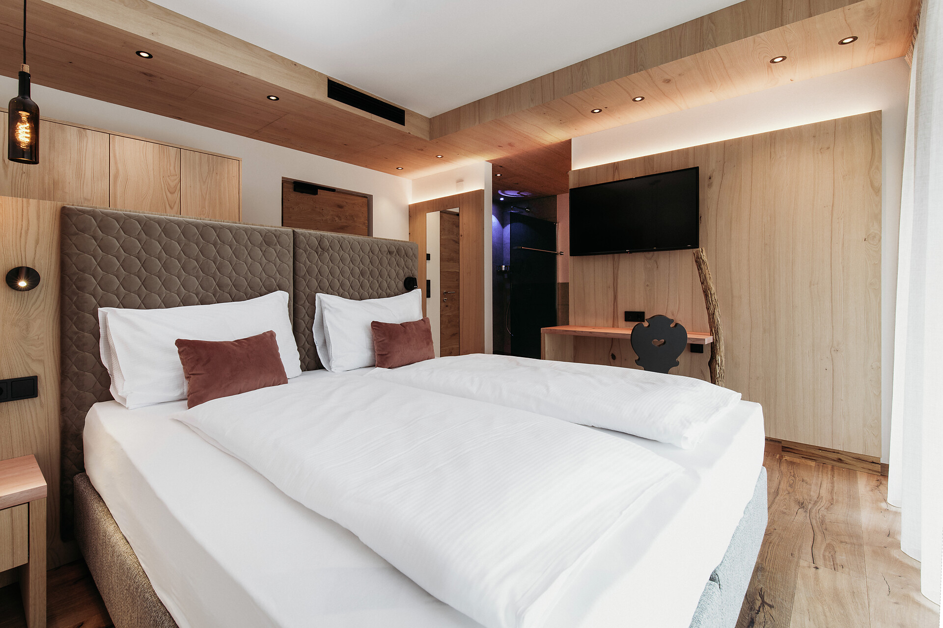 Fassl Lodge - Freistehendes Weinfass - 22 m² Doppelzimmer im Weinfass, Holzboden, Boxspringbett, Regendusche/WC, Haartrockner, SatTV, W-Lan, Klimaanlage, eigene Terasse und privater Whirlpool vor dem Zimmer
