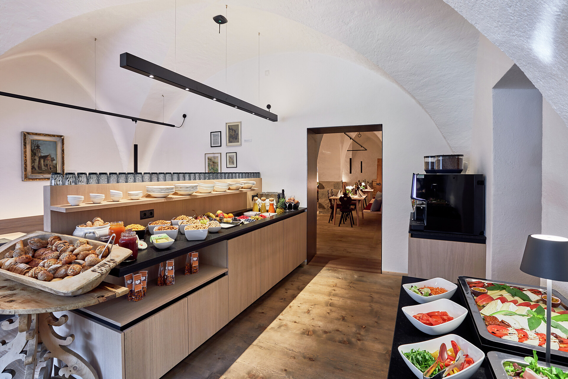 Den Gästen werden Zimmer mit Frühstück, Halbpension oder Vollpension geboten. Auf der großen Sonnenterrasse zum Eisack hin können Sie schmackhafte Gerichte aus unserer Küche, vielerlei Pizzas und auch Grillspezialitäten genießen. Montag Ruhetag.