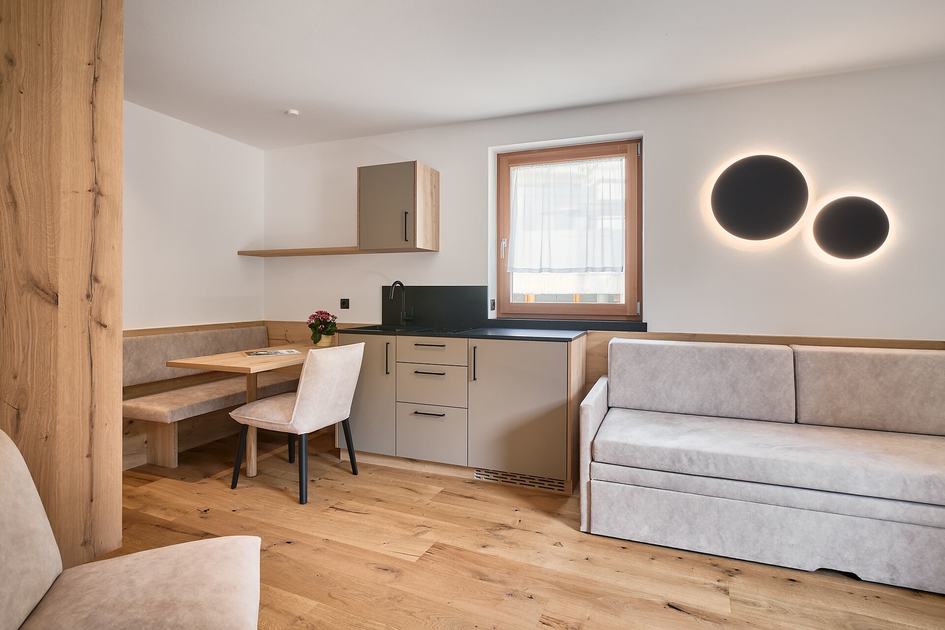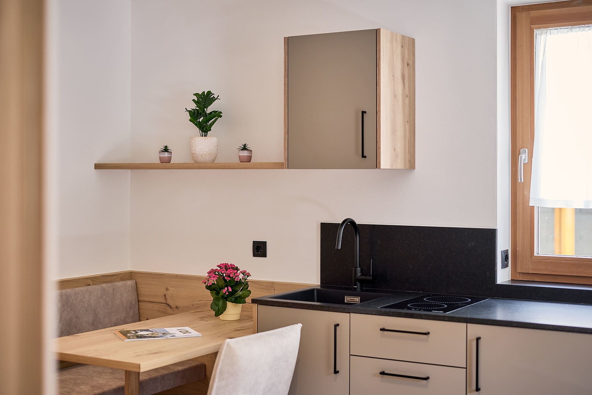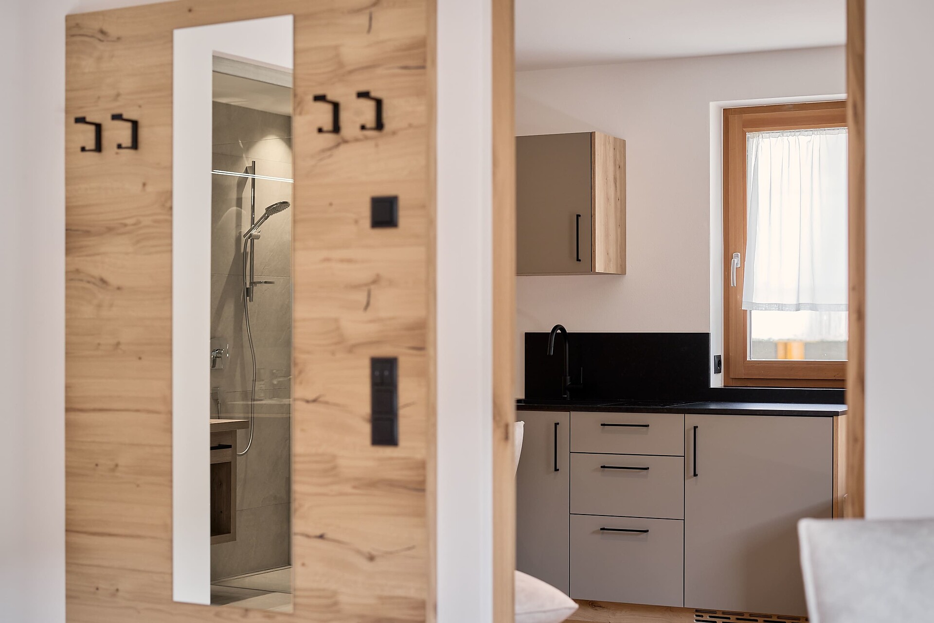 Das neue Apartment mit Balkon bietet zwei getrennte Schlafbereiche, eine praktische Kochnische, WLAN, SAT-TV sowie ein modernes Badezimmer mit Regendusche, WC, Bidet und Haartrockner.