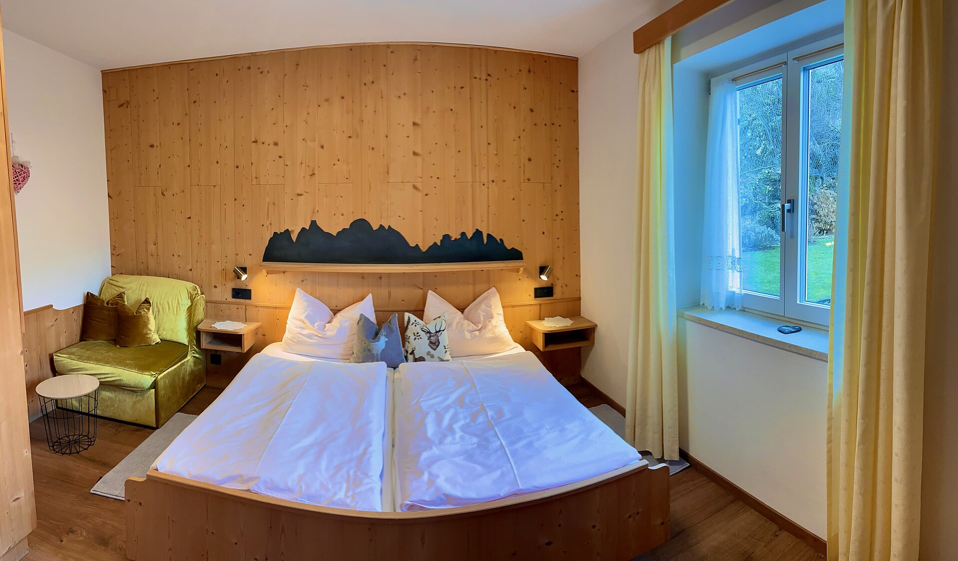 Ausstattung: Einzelbett, Doppelbett, Zustellbett, Babybett, Bettsofa, Doppelschlafcouch, Balkon, Terrasse, Garten, Barrierefrei, Kachelofen/Offener Kamin, Separater Wohnraum, Bettwäsche vorhanden, Nichtraucher-Apartment, Separate Küche, Wohnküche, Kaffeemaschine, Minibar, Geschirrspülmaschine, Gasherd, Elektroherd, Geschirrausstattung, Dusche/Bad, Separates WC, Bidet, Haarfön, Badetücher, TV, Satellit/Kabel, WLAN, Reinigung auf Anfrage, Endreinigung inbegriffen, Saisonsmiete möglich, Haupthaus, Panoramablick