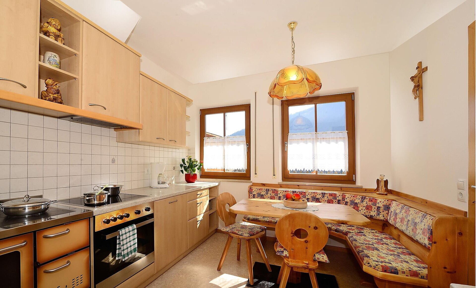 Die Wohnung hat Fernseher, SAT und WLAN. Sie hat eine voll ausgestattete Küche mit Schlafcouch. Im Vorraum steht ein Bett. Weiters befindet sich in der Wohnung ein Bad mit Dusche, WC und Bidet, sowie ein Doppelbettzimmer, wo je nach Wunsch ein Kinderbett platziert werden kann. Im Dachgeschoss befindet sich ein Aufenthaltsraum mit verschiedenen Spielen, Büchern und Fitnessgeräten, die für alle Gäste zugänglich sind. Im Hof stehen ein Grill und ein Spielhaus mit Sandkiste für Kinder. Auf unserer Terrasse können Sie nach Belieben Tischtennis spielen oder sich auf den Sonnenstühlen erholen. Unsere Wohnungen haben alle einen eigenen Balkon. Bettwäsche, Handtücher und Endreinigung sind im Preis inbegriffen. Auch Hochstuhl und Kinderbett sind vorhanden. Zu den Preisen wird noch eine Ortstaxe pro Person und Nacht dazurechnen, für alle Gäste über 14 Jahre.